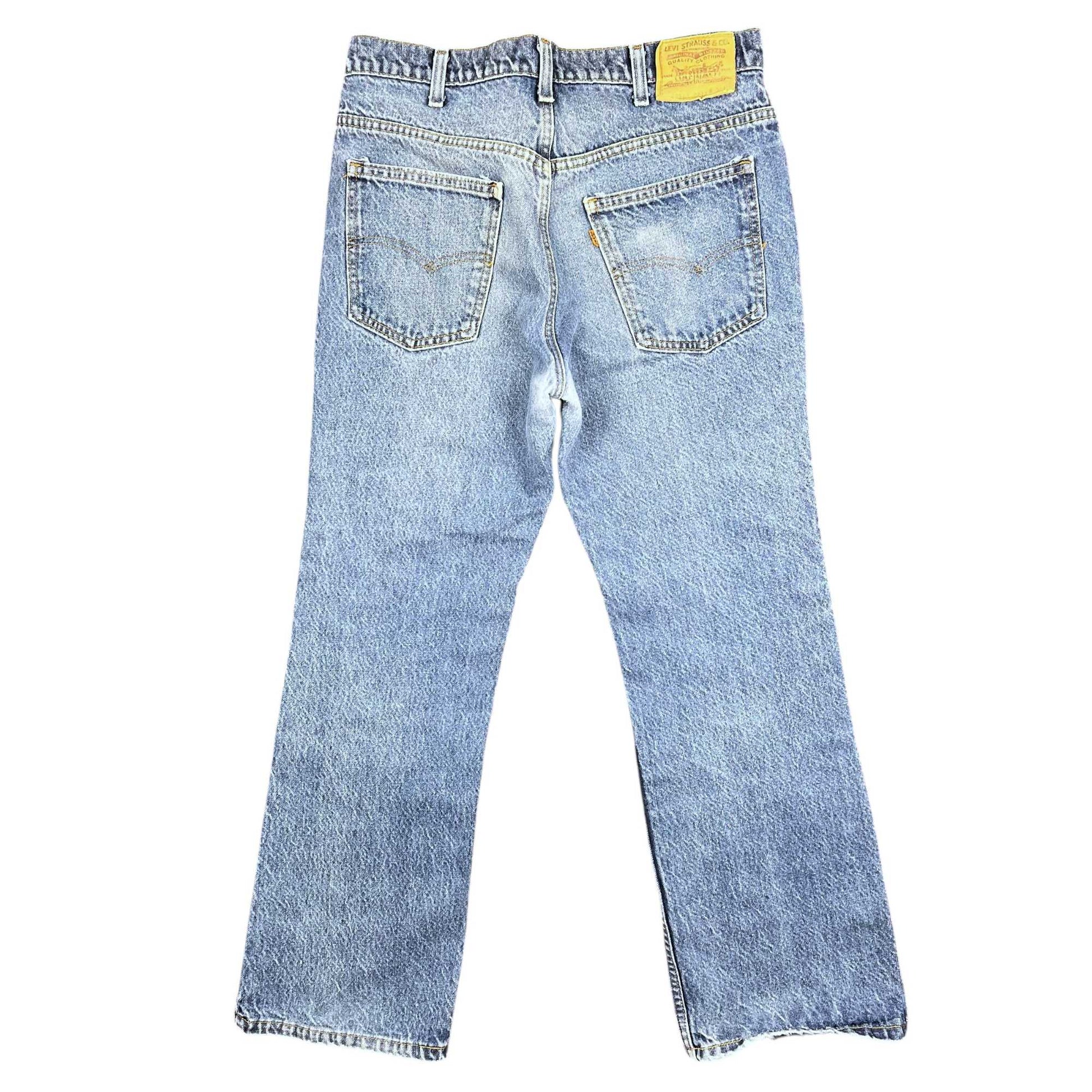 Here's Levi's orange tab denim at its finest. 1990s orange tab 517 boot cut denim jeans. Pre-owned in good vintage condition with some wear in the crotch/seat. Size is 34x30 - see actual measurements below.